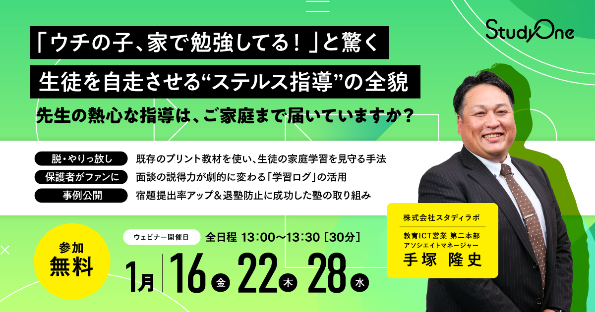 【1月開催】「ウチの子、家で勉強してる!」と驚く! 生徒を自走させる“ステルス指導”の全貌!