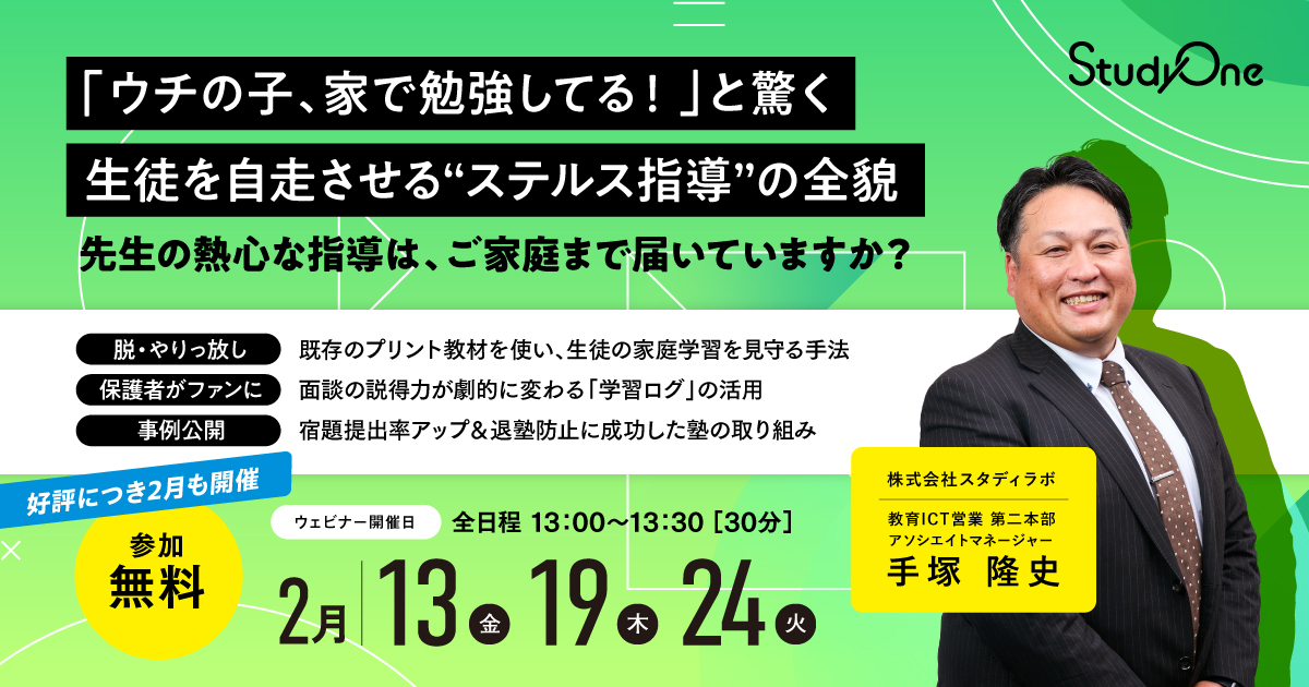 【好評につき2月も開催!】「ウチの子、家で勉強してる!」と驚く! 生徒を自走させる“ステルス指導”の全貌!