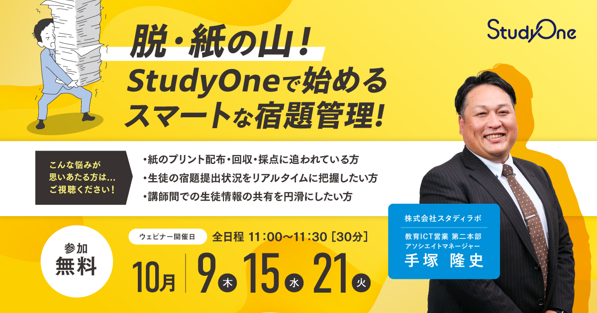 【10月開催】脱・紙の山!StudyOneで始めるスマートな宿題管理!